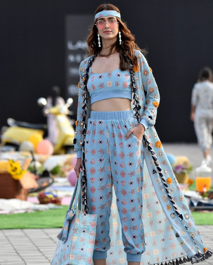 For designers Payal Singhal and Masaba Gupta it was a case of art mimicking life. For a year (and continuing) spent in sweatpants, collections took inspiration from our real-life closets. The way we dress now is steeped in sensibility and versatility—a wardrobe that can work round the clock. In a mix of high and low, street and sophisticated, Singhal brought sports bras to saris and fanny packs to several looks. Khaki joggers weren’t far behind, and a new and improved hybrid of the jogger was patented: The harem jogger—drop-crotch and draped but with all the tenets of the comfortable couchwear we've come to love.