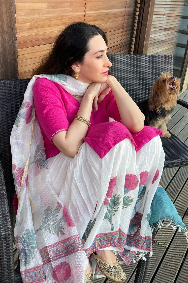Whether you’re looking for something for a small puja at home or a lunch outing with your family, a cotton kurta set like Karisma Kapoor’s latest pick will sort you out. Can’t wait to try on the look for yourself? Keep scrolling to find the exact same ensemble with accessories to recreate it.