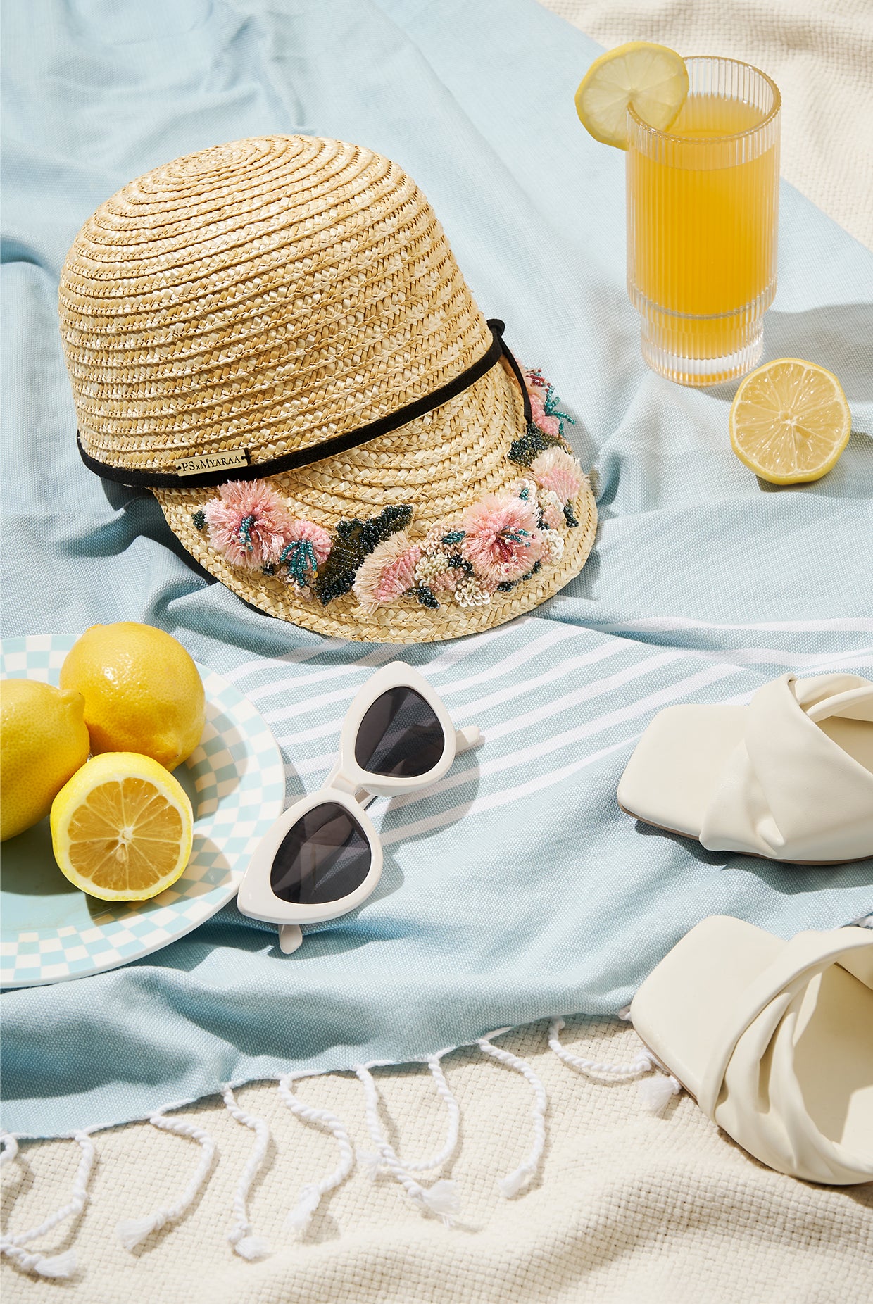 For a bold and sophisticated look, the Raven Floppy Hat is perfect. Its wide brim offers great protection from sun, and the black colour adds a touch of elegance. The Carnation Wide Brim Boater Hat is made from natural wheat straw, featuring a wider brim for extra coverage, and it’s adorned with beautifully embroidered flowers on the crown, giving it a fresh, summery vibe. Last but not least, our Raffia Hat is a lightweight, fringed hat with a carefree, Bohemian vibe. Its long fringe pattern adds style, and it's comfortable to wear all day.