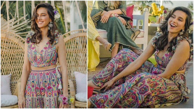 Shibani Dandekar's colourful mehendi outfit designed by Payal Singhal: Decoded
