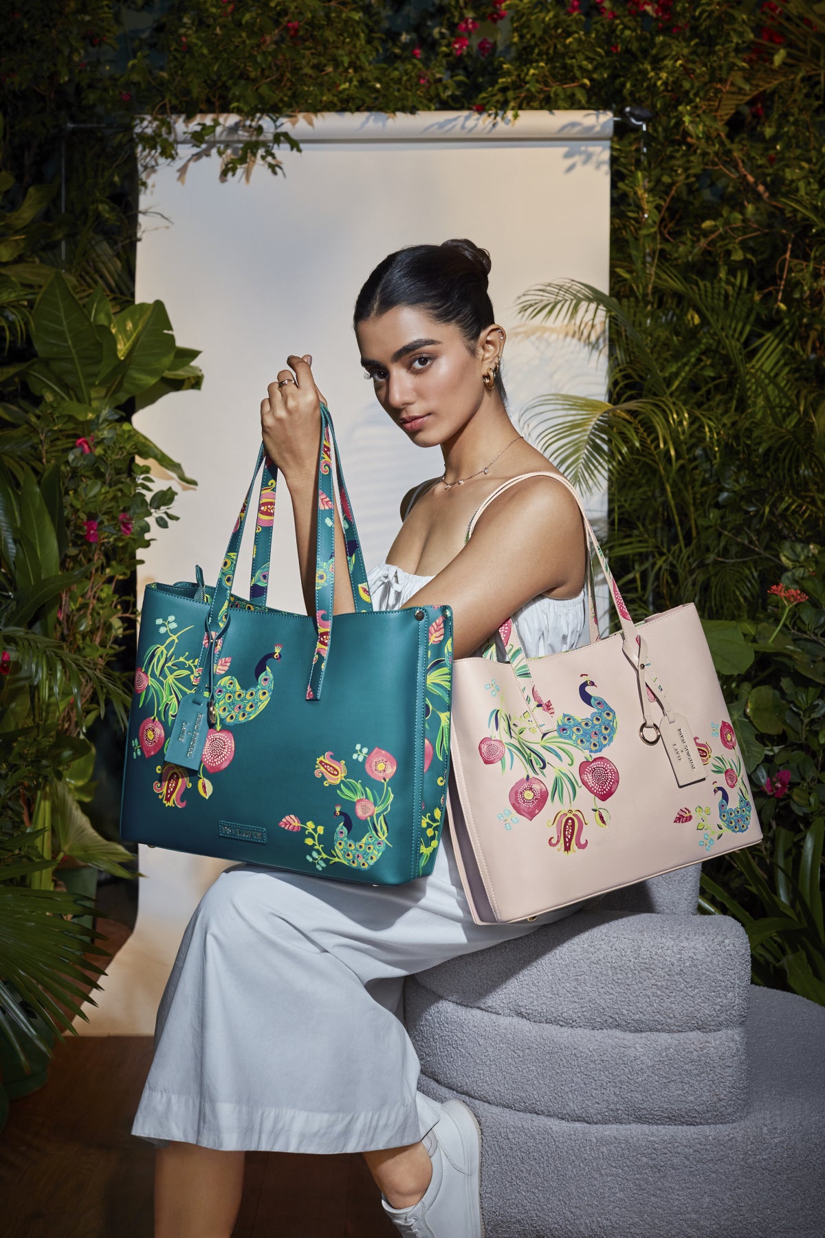 Brimming with variety for every style, this collaboration introduces a curated array of prints that speak to diverse sensibilities, making each handbag a statement in its own right. For the bold adventurer, the safari print channels the untamed beauty of African jungles, with vivid motifs of flora and fauna that evoke a spirit of wanderlust. For those drawn to regal opulence, the Anar Mor print pays tribute to Jaipur’s majestic palaces, merging nostalgia with hand-painted intricacy for a touch of royal charm. The Abutilon print, a serene nod to an English summer garden, infuses the collection with soft pastels and vibrant blooms—perfect for those who seek the tranquillity of nature. And for lovers of heritage, the Saras print brings to life the grandeur of Mughal gardens, with plant motifs and detailing that transport you to another time.