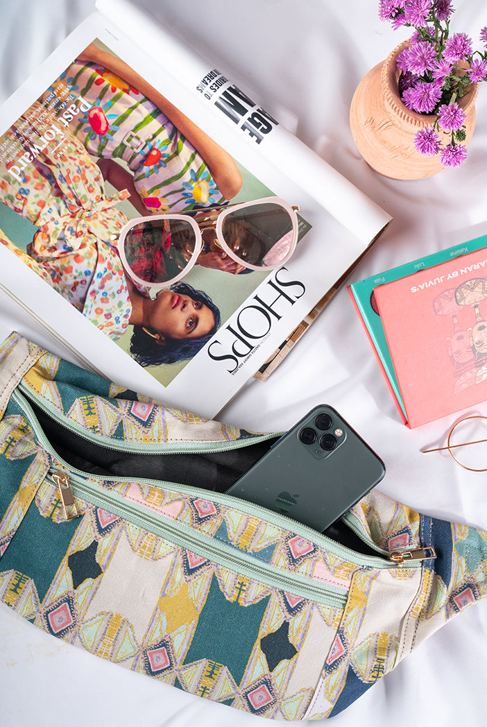 Green Aztek Print Canvas Bumbag