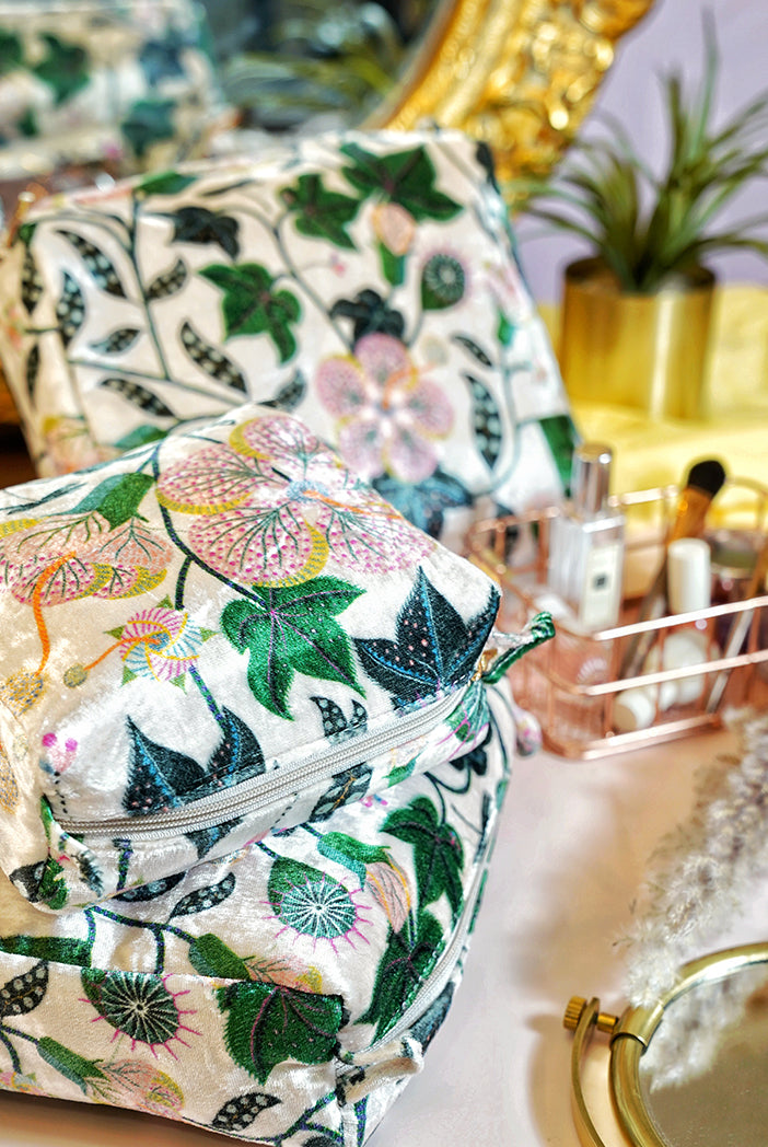 A perfect gift or travel essential that includes a set of 3 Vanity Kits in small, medium and large sizes, in signature #PSPrint - White Abutilon.