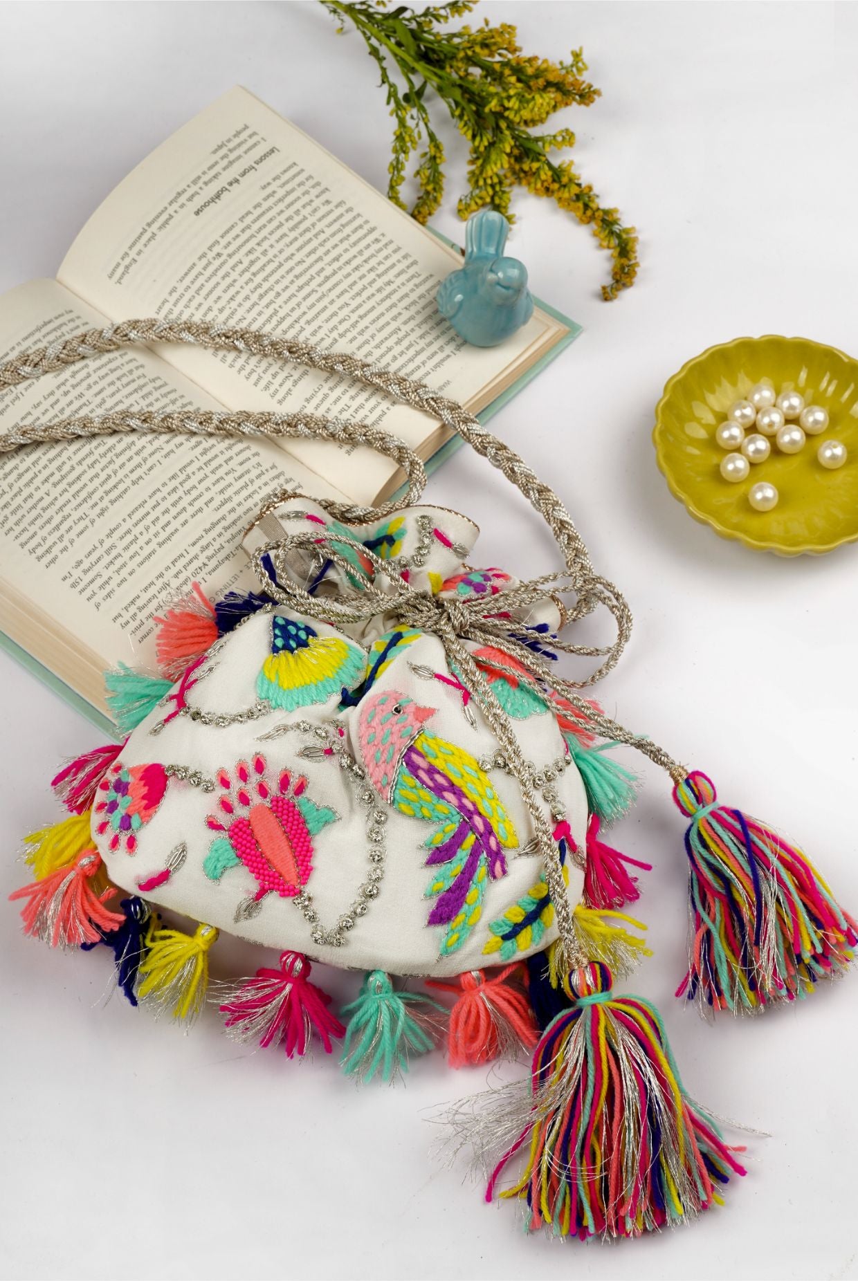 White georgette embroidered potli.
